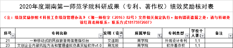 2020年度科研成果绩效奖励核对的公示