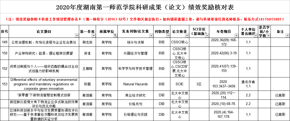 接科研处通知,现将2020年度科研成果绩效奖励核对公示5天。请您认真核对自己的成果,如有异议,请联系科研处徐老师,18175972607。