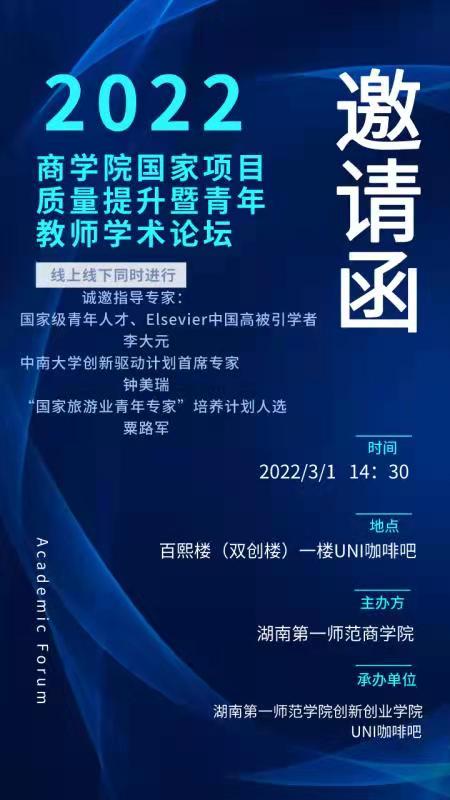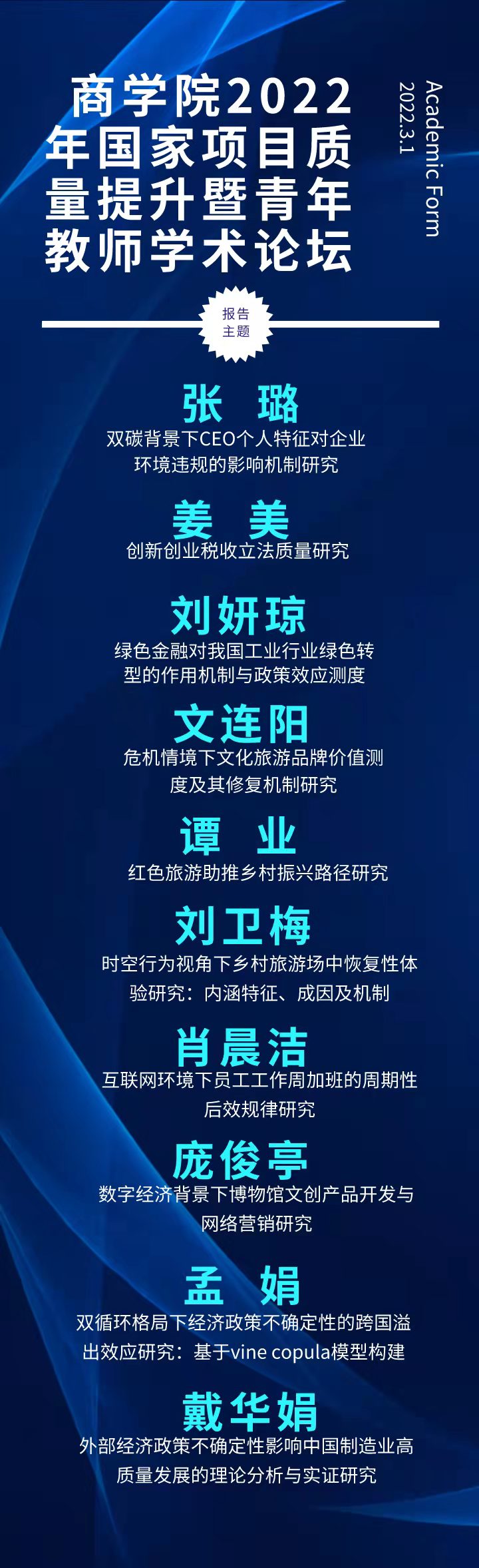 学术论坛预告|商学院2022年国家项目质量提升暨青年教师学术论坛