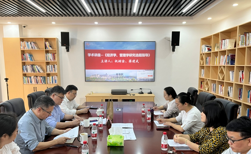 2023年10月31日下午,我院邀请湖南大学经济与贸易学院党委书记祝树金教授和深圳大学管理学院副院长蒋建武教授在玉衡南404开展经济学与管理学研究选题指导讲座。王朝晖副院长主持,荆龙姣副院长、李慧博士、罗翼婷博士等六位教师分别就对各自的课题研究情况进行了汇报,各系部十余位教师参与了讨论。