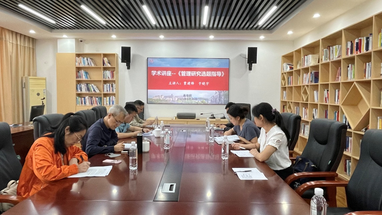 2023年9月25日上午,我院邀请东北大学工商管理学院副院长贾建锋教授和上海管理学院副院长于晓宇教授在玉衡南404开展管理研究选题指导讲座。王朝晖副院长主持,荆龙姣副院长、张青博士、刘筱韵博士三位教师分别对课题研究进行了汇报。