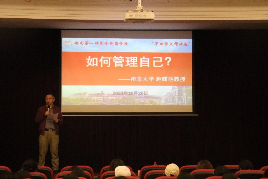 为进一步引导新生树立自我管理意识,帮助其更好适应大学生活,10月20日下午3时,商学院邀请南京大学赵曙明教授于城南书院多功能报告厅作主题演讲。商学院副院长王朝晖,辅导员刘艺及23级新生代表共两百多人参加活动。讲座由王朝晖副院长主持。