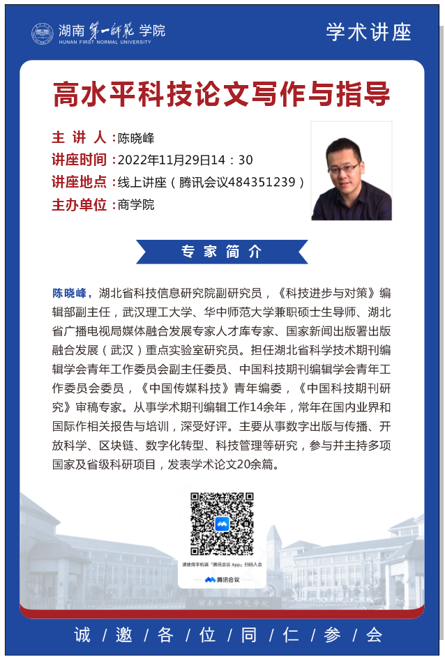学术讲座预告:高水平科技论文写作与指导
