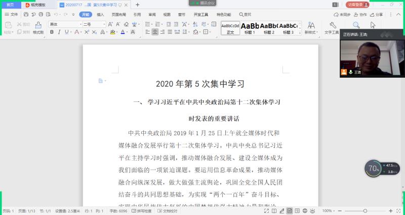 7月31日,行政支部举行7月党日活动,以线上会议形式组织学习党总支部署的学习文件。会议由党支部书记王洁主持,全体党员参加学习。