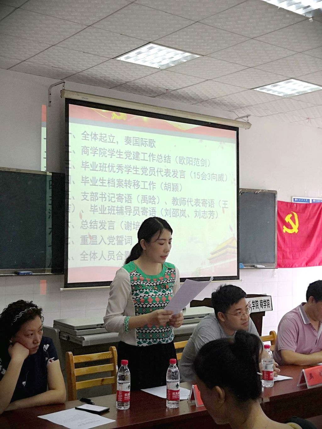 为加强基层党建工作,开展师生共建工程,经支委会研究决定,于6月20日开展师生共建专题党日活动。活动由党总支组织,教工一支部与学生一、二支部合作,为毕业生党员举行“最后一次党课”。