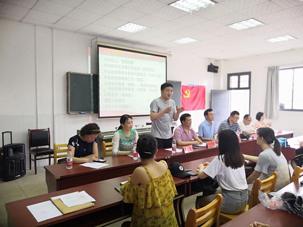 “最后一次党课”由党总支副书记欧阳范剑主持,党总支书记谢培松做了“牢记初心和使命,肩负起国家和民族的希望”的主题发言。学生一支部书记禹晗、二支部书记胡颖、教工一支部书记王洁、组织委员刘邵岚、党员代表刘志芳分别发言,对毕业生党员的政治学习提出“学原著、学原文、学原理”、“终身学习、学以致用、知行合一”的要求,并祝福毕业生党员未来一帆风顺。