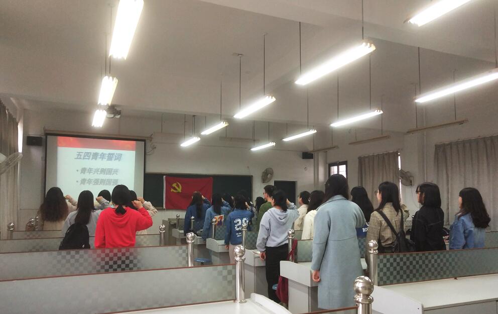 随后开展了纪念五四运动的活动,活动主要内容包括学习《习近平总书记在纪念五四运动100周年大会上的重要讲话》、观看五四运动历史影片、集体宣誓等。通过学习讲话和观看影片,学生党员切身体会到青年所承担的历史重任;通过宣誓活动,学生党员切身感受到自身的时代使命。