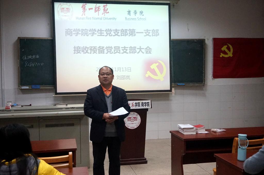 2018年11月13日晚上六点,商学院学生第一党支部、第二党支部召开了支部接收预备党员大会。学生第一党支部会场在玉衡楼南604,由学生第一党支部组织委员刘邵岚老师主持;学生第二党支部会场在玉衡楼南401,由学生第二党支部书记胡颖老师主持。参与本次会议的是我院学生党支部学生党员以及本批25名发展对象。