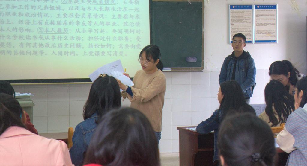 接下来,党支部助理胡蓉细致讲解党员发展程序及材料的填写要求,指导发展对象填写本阶段的材料,并提醒大家务必认真对待,规范程序。随后,胡颖老师提出了一些尤其要注意的细节,并对发展对象的疑难进行解答。