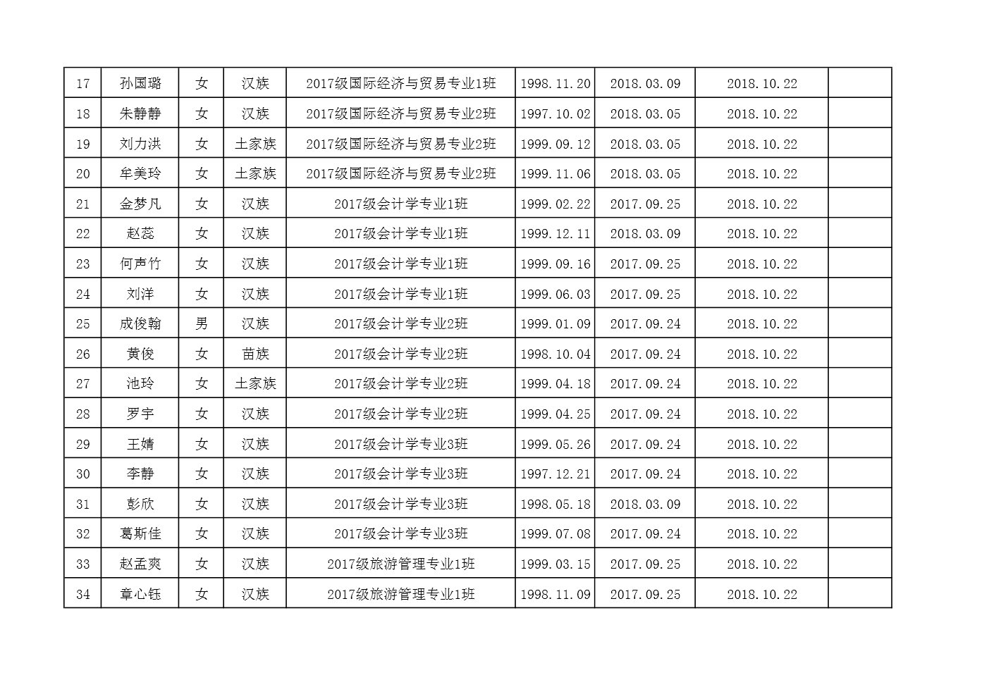 附:2018年10月商学院入党积极分子备案名单(52人)