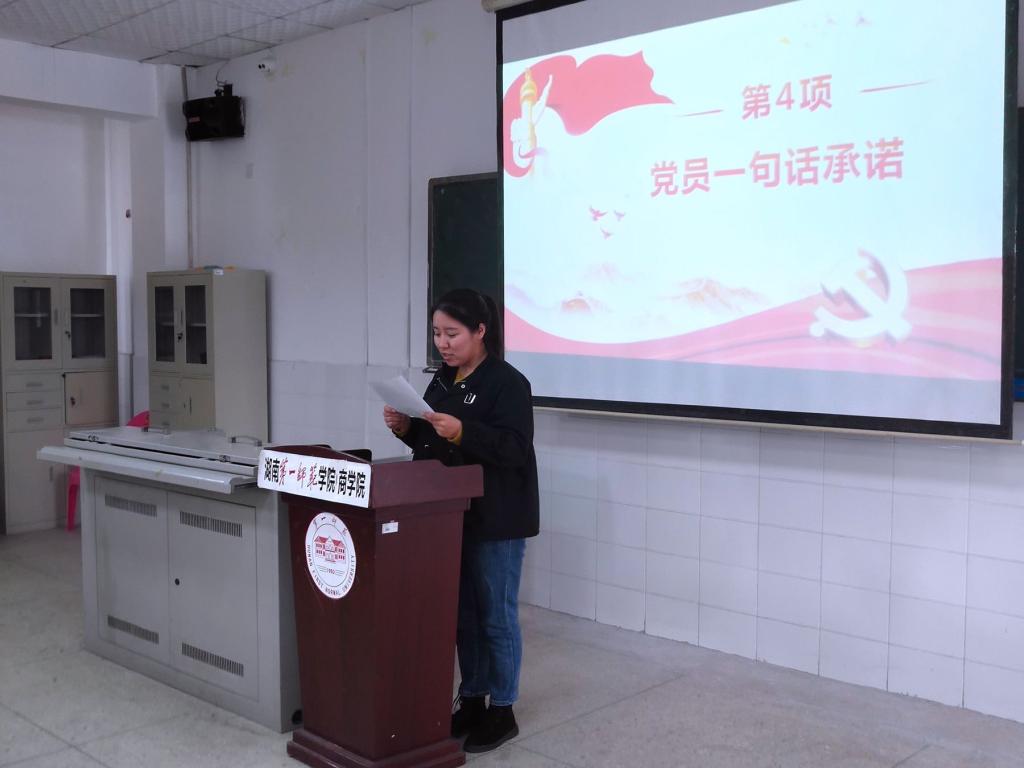 2019年11月12日,商学院学生党支部在玉衡南604开展“勇立潮头,争当先锋”党员承诺践诺活动。