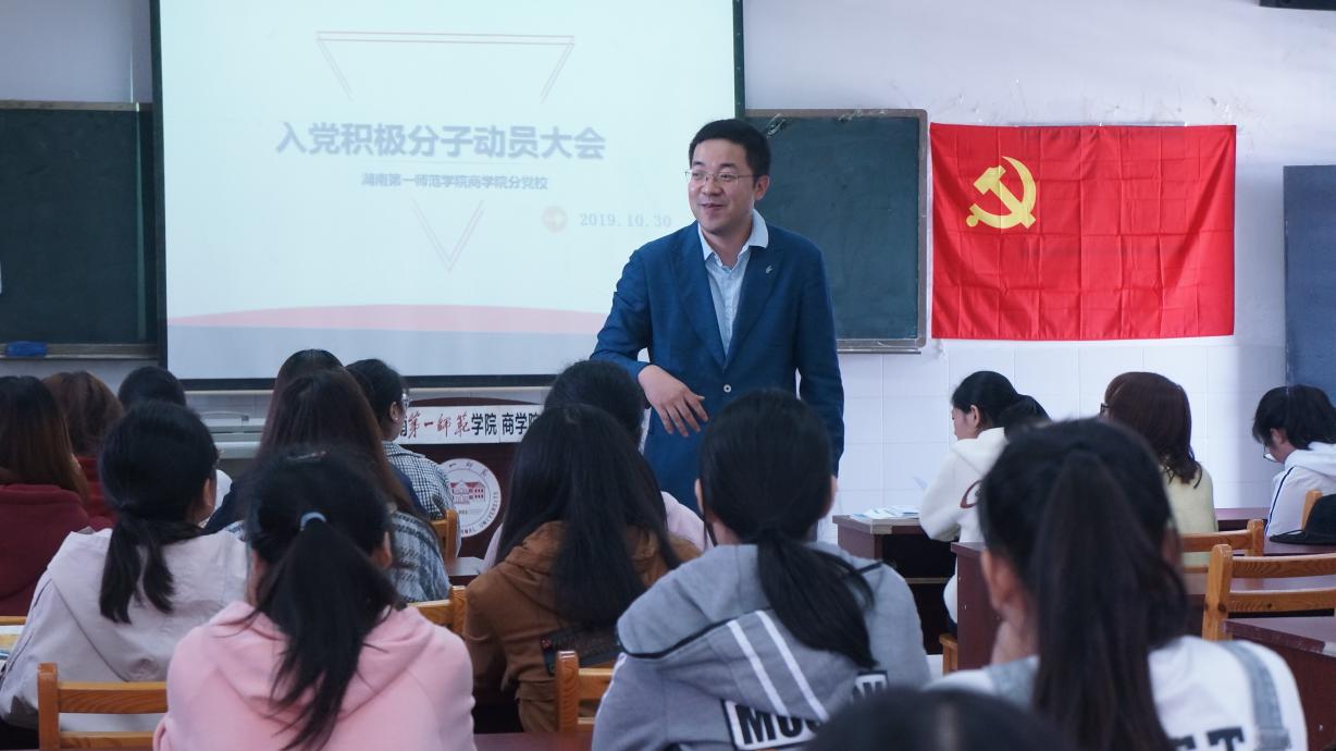 2019年10月30日,商学院学生党支部在玉衡南楼604召开第十九期入党积极分子培训班动员大会,新一批58名入党积极分子参加会议。