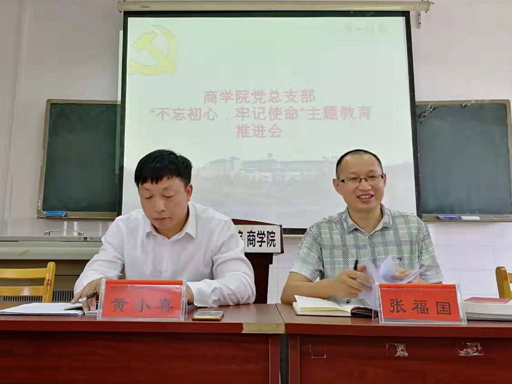 2019年伟德国际1946商学院党总支部“不忘初心、牢记使命”主题教育推进会于9月24日下午两点三十分在玉衡南604召开。会议由商学院党总支书记张福国主持。