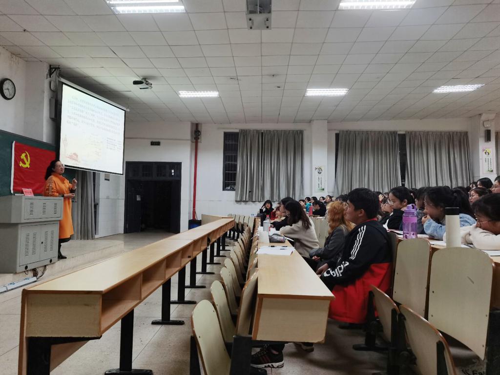 2020年11月16日晚,马克思主义学院院长周小李教授为商学院和马克思主义学院分党校入党积极分子讲授了主题为“学党史,颂党恩”的党课。