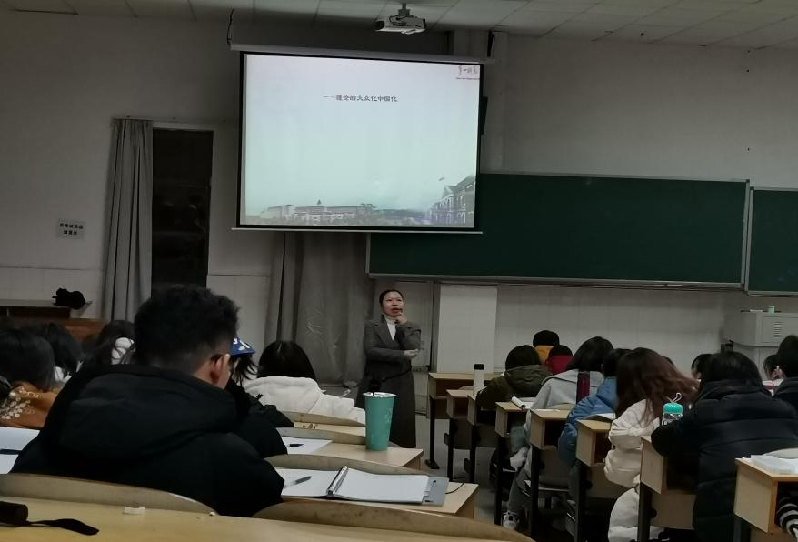 2020年11月24日晚,马克思主义学院党总支副书记谢素科同志为商学院、马克思主义学院入党积极分子讲授了主题为“马克思主义中国化与中国共产党的理论创新”的党课。