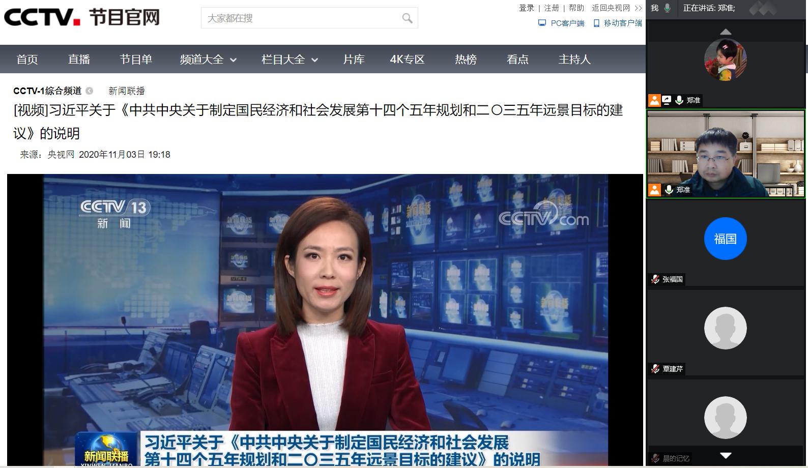 11月27日晚,商学院国贸教研室党支部通过腾讯会议开展主题党日活动,认真学习党的十九届五中全会精神。