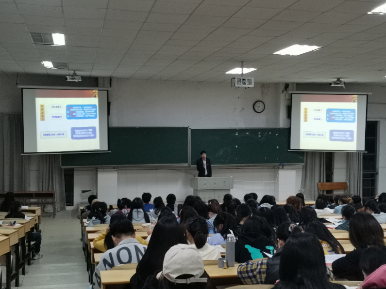 2021年4月27日晚,马克思主义学院党总支书记欧阳斐为马克思主义学院、商学院入党积极分子讲授了主题为“自觉践行社会主义核心价值观,勇敢担当民族复兴大任的时代新人”的党课。