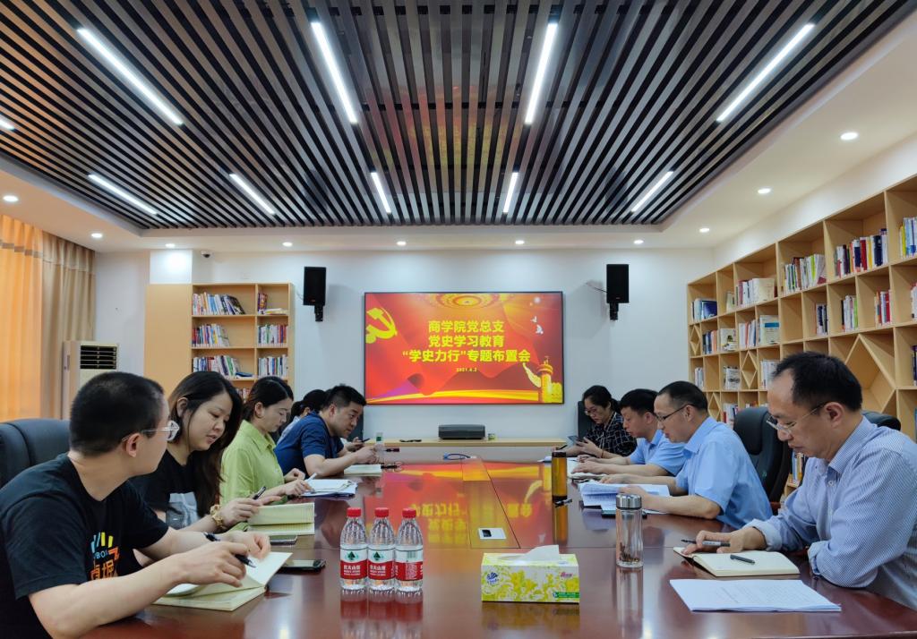 6月2日,商学院党总支召开“学史力行”专题布置会,部署第四阶段党史学习教育工作。会议由党总支书记张福国主持,院长黄小喜、副书记李辉华、副院长荆龙姣及党政办、教研办、学工办相关工作人员参加了会议。