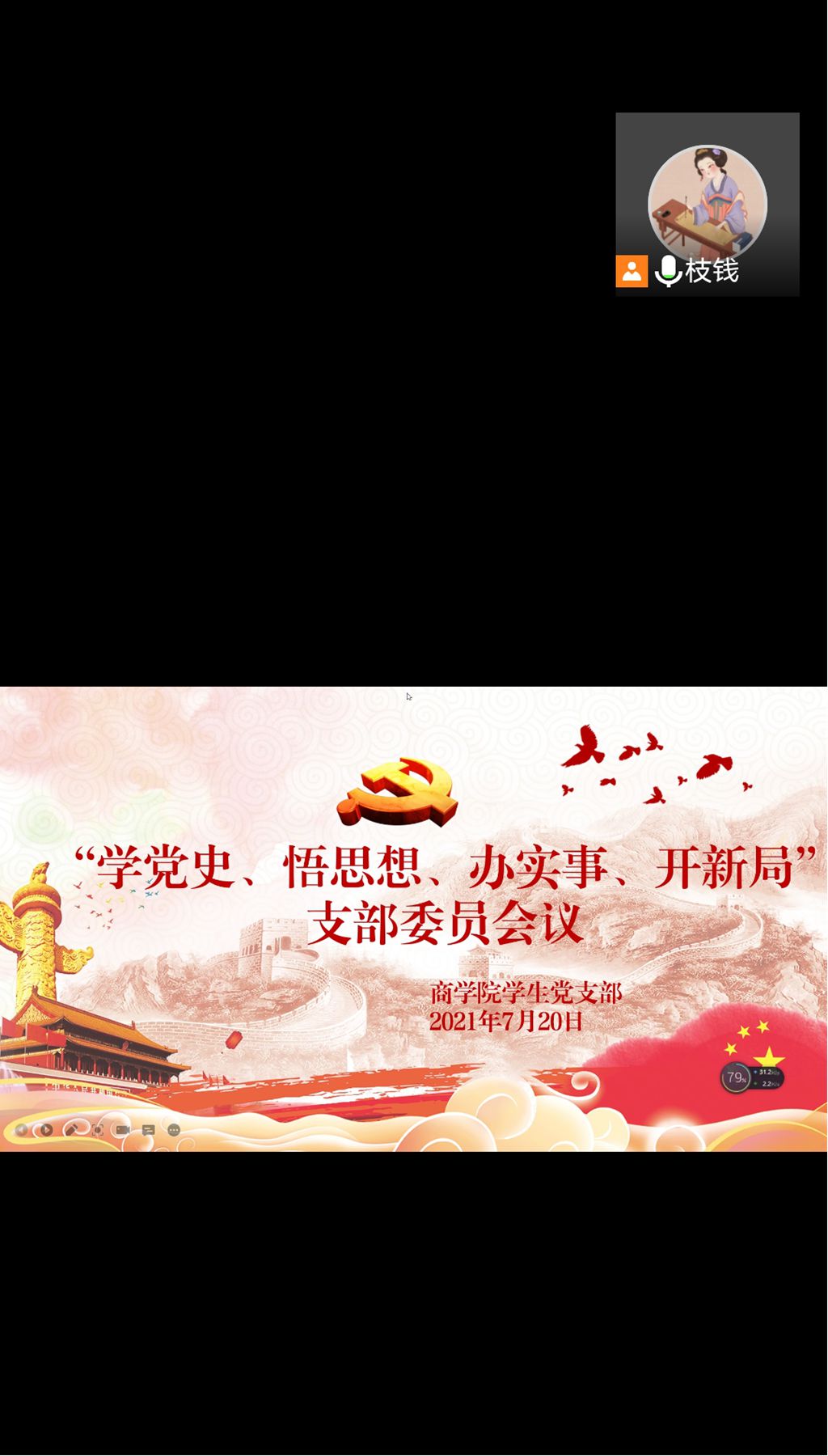 2021年7月20日,商学院学生党支部在腾讯会议上召开了支部委员会。学生党支部书记禹晗、副书记冯择佳、组织委员龚曦、宣传委员许炳娜参加会议。