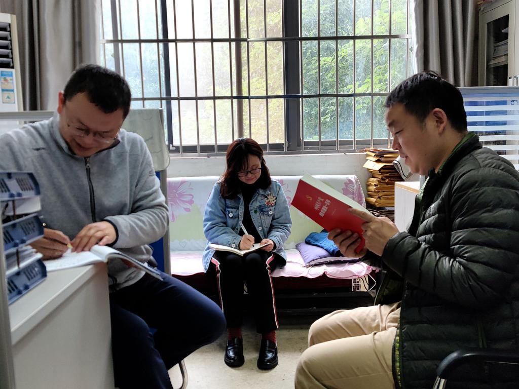 王洁介绍了学习资料情况,《中国共产党组织建设一百年》是经党中央批准,中央组织部在庆祝建党100周年之际组织编写的学习研究党的组织建设史的基本教材,是党员开展党史学习教育的重要读物,要求全体同志认真学习,从党的组织建设史中汲取智慧和力量,增强践行新时代党的组织路线的思想自觉和行动自觉。汤双权同志带领全体党员开展学习。