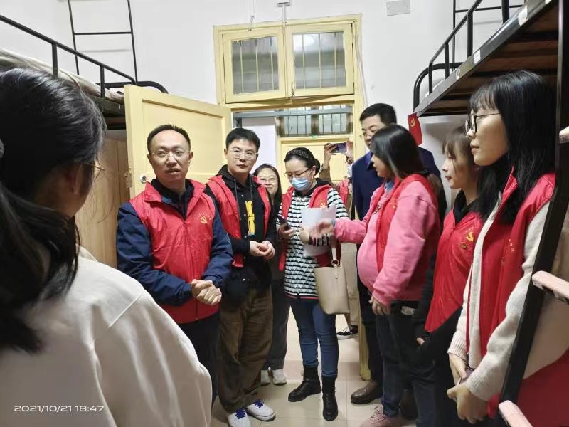 2021年10月21日,商学院学生党支部开展“聆听‘新’声,携手同行”党员下寝志愿服务活动,商学院党委副书记李辉华、学生党支部支委会全体老师与学生党员参加活动。