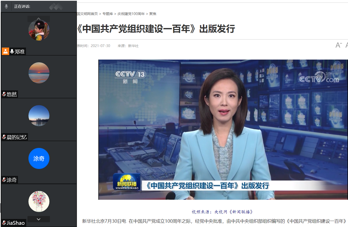 10月27日晚,商学院国际经济与贸易教研室党支部全体党员通过腾讯会议平台认真学习了重点书籍《中国共产党组织建设一百年》。