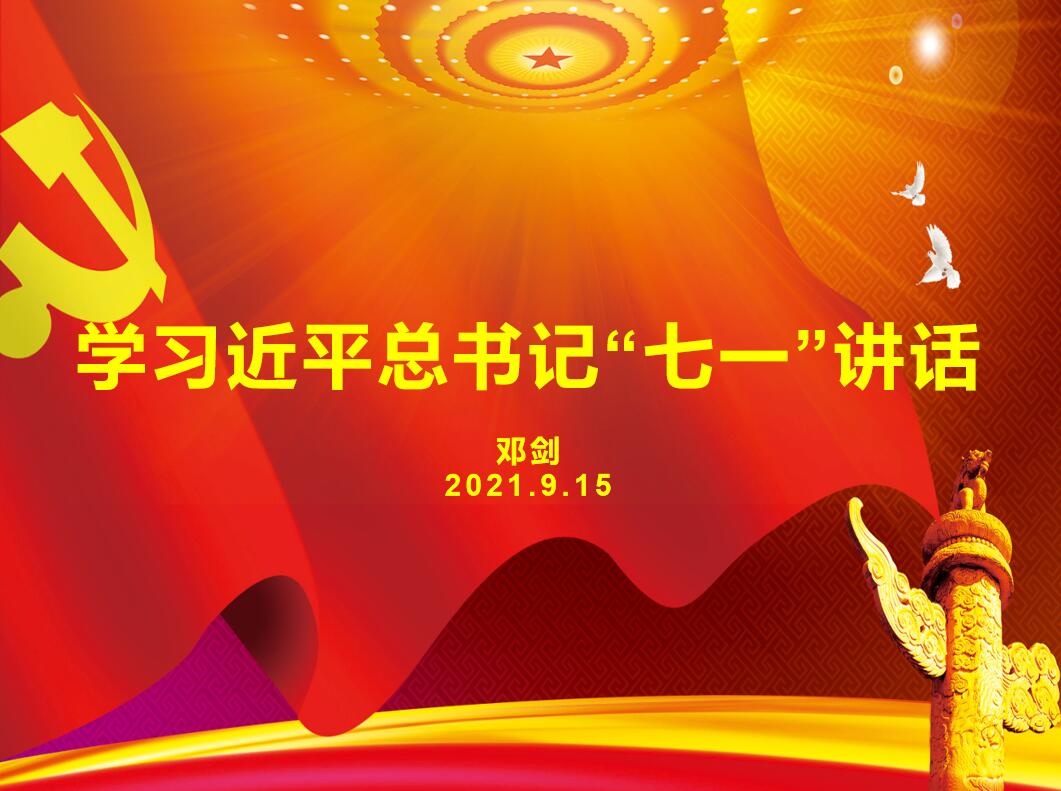 邓剑组织党员学习了习近平总书记在庆祝中国共产党成立100周年大会上的讲话全文,指出党的百年庆典盛况空前,总书记的讲话令人心潮澎湃、热血激昂、倍感振奋,全体党员要和全国人民同心向党、携手奋进,为第二个百年目标努力奋斗。党员同志们要把认真学习贯彻习近平总书记“七一”重要讲话精神作为党史学习教育的核心内容,吃透精神实质,把握实践要求,从党的百年奋斗史中汲取前进的智慧和力量,不断增强“四个意识”、坚定“四个自信”、做到“两个维护”。