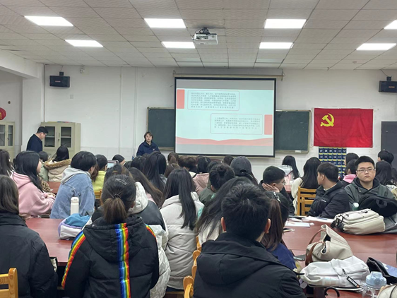 2023年3月21日,商学院会计学学生党支部、市场营销学生党支部、旅游管理学生党支部和国际经济与贸易学生党支部在玉衡南604开展“兴科重教促发展,树人育才谋复兴”三月微党课,邀请徐小妍、刘海玲、郭姝彤和罗誉威4名优秀学生党员上台讲微党课。全体学生党员参与学习。