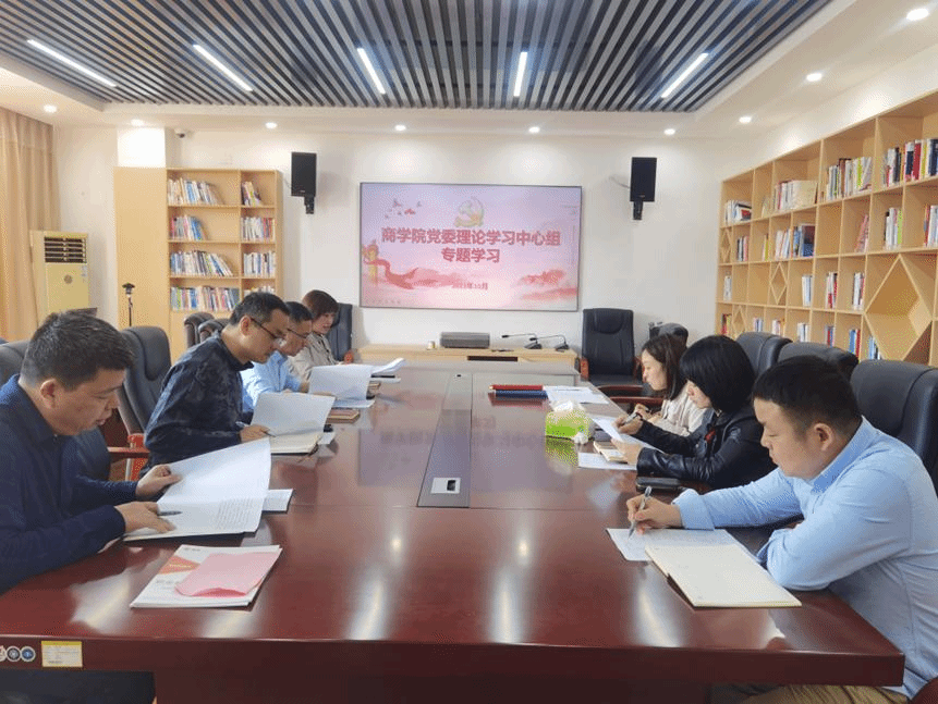 10月25日上午9点,商学院党委理论学习中心组在玉衡南404开展10月集体学习,全体院领导、院党委纪检委员庞俊亭、三办主任参加学习。党委书记邓剑主持并总结讲话。