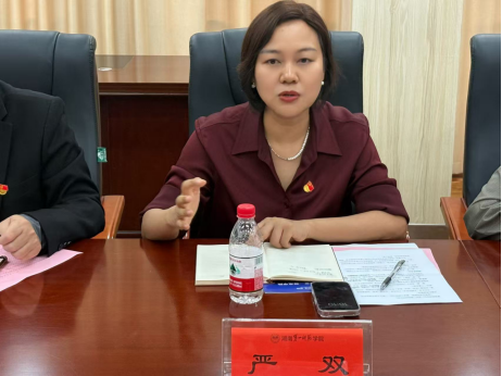 会上,邓剑代表学院对严双一行的到来表示热烈欢迎,并简要介绍了商学院党建工作的整体情况。她指出,两校商学院在党建与业务融合、学生思政教育等领域各具特色,希望通过此次交流互学互鉴,共同提升基层党建工作质量。王朝晖院长介绍了学院基本情况,围绕学院人才培养、学科建设、党业融合等方面进行发言。严双简要介绍了湖南女子学院商学院的发展概况,着重强调了本息交流的目的,表示希望借鉴我校在党建引领下学科建设与人才培养的经验,尤其是基层党组织标准化建设及样板支部的创新做法。