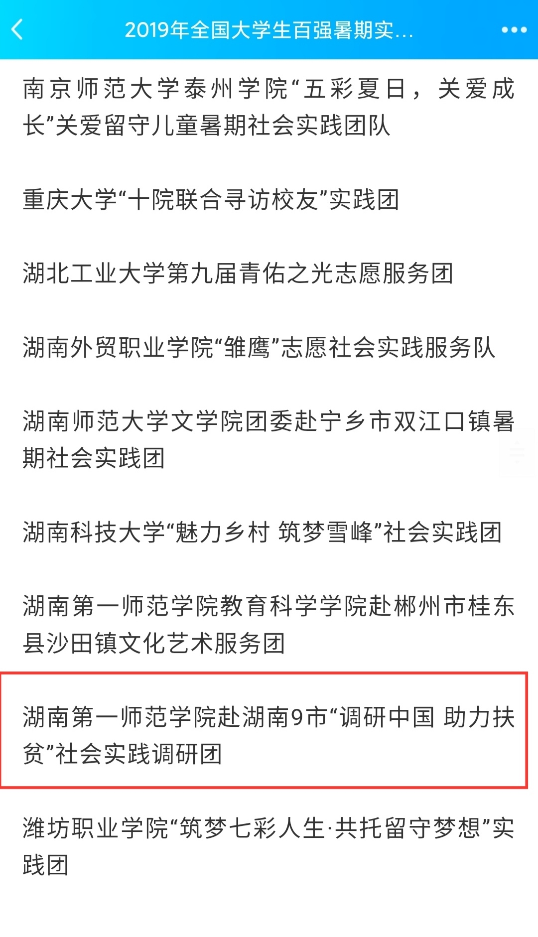 在2019年全国大中专学生暑期“三下乡”实践活动总结评选中,我院荣获优秀团队奖,在历经14天的深入调研实践中,商院学子收获了感动,守护了红色记忆。在2019级百强实践团队评选中,我院荣获优秀实践团队,跻身全国三十强,14天深入基层调研实践和后期的不断努力,将众多党员相聚在一起,聆听革命故事,追溯红色回忆。在2019级“镜头中的三下乡”评选中,我院荣获优秀视频奖和优秀摄影奖,镜头定格在感动,画面停格在笑容。一张张纯真的笑脸定格的不止是孩子们的快乐,更记录着我院“三下乡”参与人员的幸福与收获。