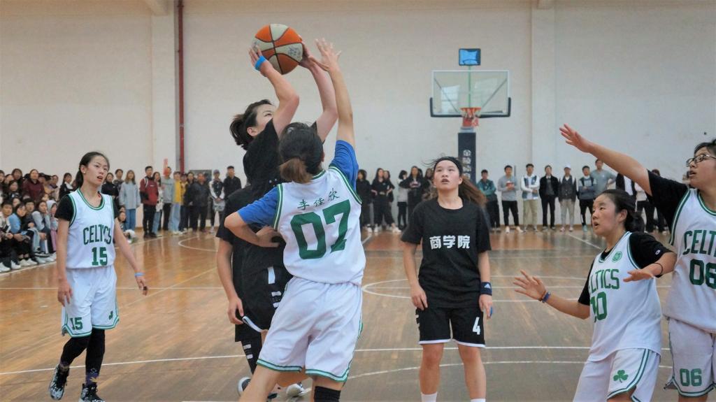 易边再战,商院连续取分,文传院改进战略,重守强攻,抢断盖帽稳定发挥,商院长线传球,灵活应对。球场旁的观众们“商学院/文传院,防守!”的口号迭起,一浪接一浪的欢呼热潮点燃了整个体育馆的气氛。我院女篮队长刘子群状态神勇,三个两分打进,拉开比分,节末哨声响起,文传院未能扭转局势,不敌商院女篮。