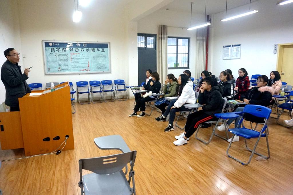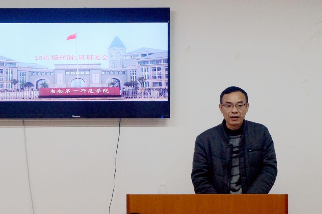 班委会是大学班级的领导核心和支柱,为促进班级工作顺利开展,凝聚班级建设的中坚力量,2018年11月14日上午9点,商学院党总支部书记谢培松在玉衡南401教室,组织开展2018级营销一班主题班委会,班委会主题为“班委如何加强自身建设和服务同学”。