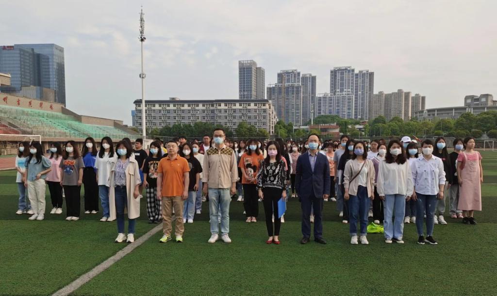 4月25日上午7点,伟德国际1946商学院在东方红校区田径场举行升国旗仪式。商学院副书记李辉华、副院长汤礼莎、全体行政人员、全体辅导员及2020、2021级学生参加升旗仪式。