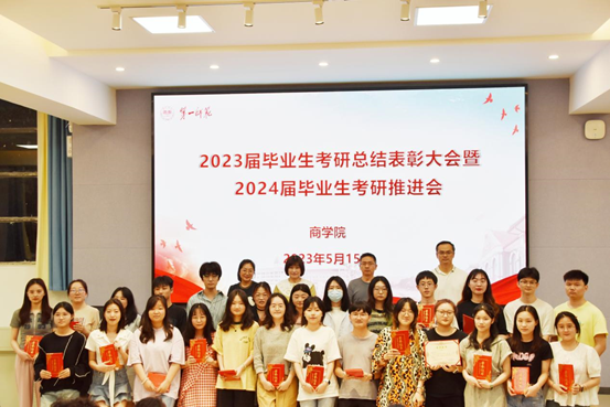5月15日—17日晚,商学院在玉衡南101举行2023届毕业生考研总结表彰大会暨考研推进、考研考公分享会。商学院党委书记邓剑、副院长王朝晖、副院长荆龙姣、党委副书记刘青、学工办全体老师以及学院各级学生代表参加了本次会议。会上19级国贸1班赵泓吏,会计2班谢成香、刘楚楚、刘子涵,旅管1班陈可馨,会计1班杨婷进行了经验分享,会议由刘青主持。