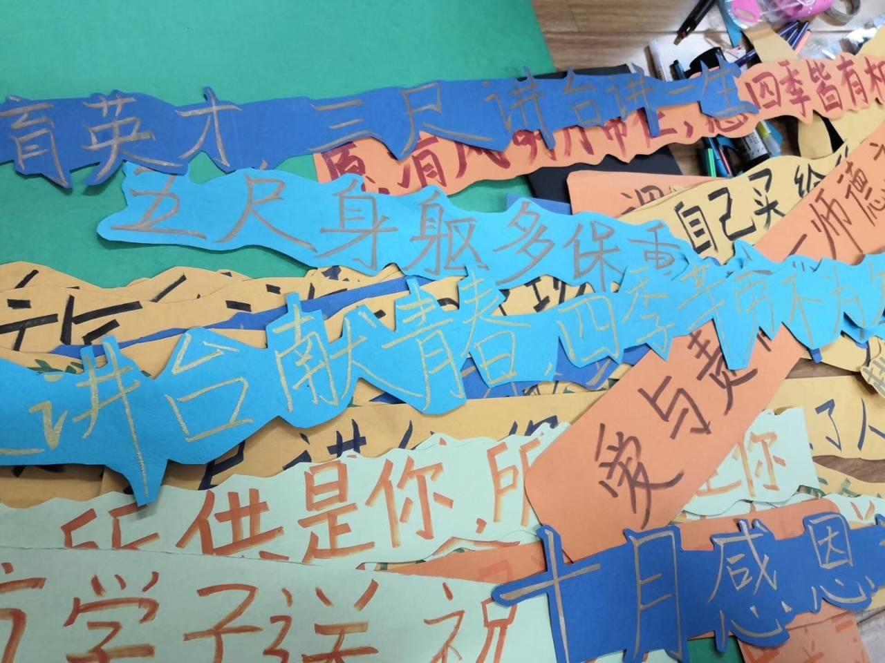 “我们想做你永不折旧的资产”、“所供是你,所需也是你。”于玉衡南楼拾阶而上,迎面而来的是一段段极富商院特色的“土味情话”,一节节阶梯上是一笔一划,商院学子对老师们的浓浓爱意。楼道两旁,一幅幅Q版照片,三尺讲台上的老师的可爱引来众多同学围观拍照。“老师请往右看”,昔日空无一物的灰墙上挂满了商院学子为老师手写的情书,纸短情长,满满一片墙也承载不了商院学子对老师的款款深情。楼里是爱,楼外是情。“学高为师,身正为范;行智为高,创新为院。”玉衡楼墙外,青志协同学们挂上红色横幅,崇师风气弥漫一师校园。明信片、贺卡、马克杯、钥匙挂件,学生们的小小心意让商院全体教职员工过上了一个惊喜不断的教师节。