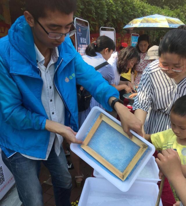 活动当天进行了一系列有趣的科学小实验,让孩子们从实验中理解科学。分别开展了七彩泡泡、鱼洗盆、3D打印、微观世界探秘、结绳、叶脉书签的制作、古法造纸等科学小实验。让孩子们在一个个生动有趣的实验中主动去体会科学的奥秘,并通过自己的双手亲自做出精致的作品。活动现场热闹非凡,一片欢声笑语。在烈日下,志愿者和造梦工厂团队即使大汗淋漓也依旧坚持在自己的岗位为上,穿梭在展台之间,辅导孩子们获取科普知识,为儿童的科普教育做出贡献。