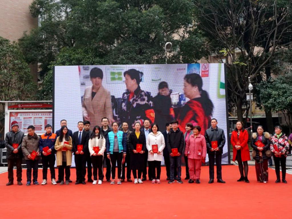 本次表彰的志愿者有来自社区的优秀居民志愿者、物业志愿者以及来自我校的优秀志愿者。在精彩的节目开始之前首先举行了优秀志愿者表彰大会在主持人的暖心介绍下,优秀志愿者们一一走上舞台,由社区领导为他们送上证书和奖品。这一年以来他们所有的努力与用心在那一刻都得到了在场所有人的认可。志愿者们用脸上洋溢的微笑告诉所有人,他们会继续努力,带给桔苑社区更多的爱与温暖。在表彰大会的最后,志愿者们也与社区领导们一起合影留念。