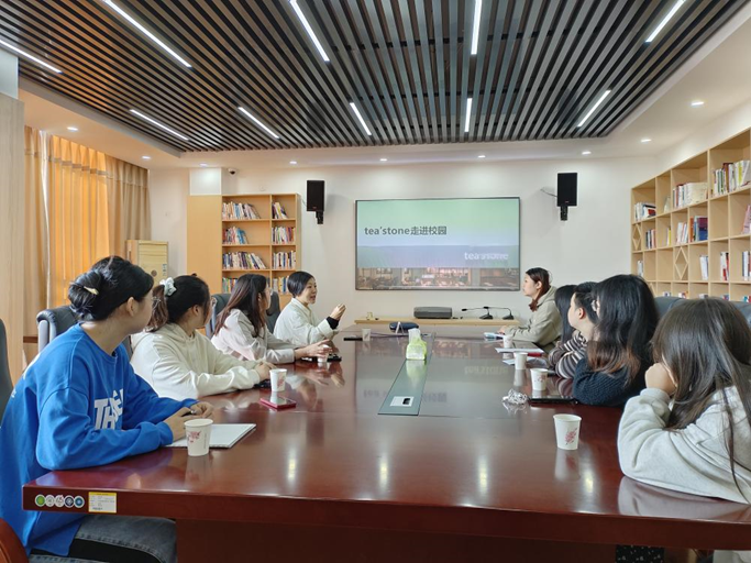 2023年11月17日上午,tea'stone人资行政总监谢幸携招聘经理来到我院,在玉衡南404会议室开展tea'stone品牌介绍和管培生岗位的招聘宣讲。部分2024届毕业生参加,由市场营销系系主任肖晨洁博士主持。