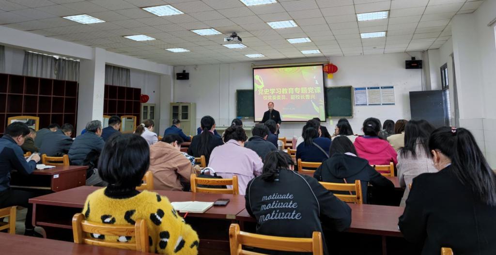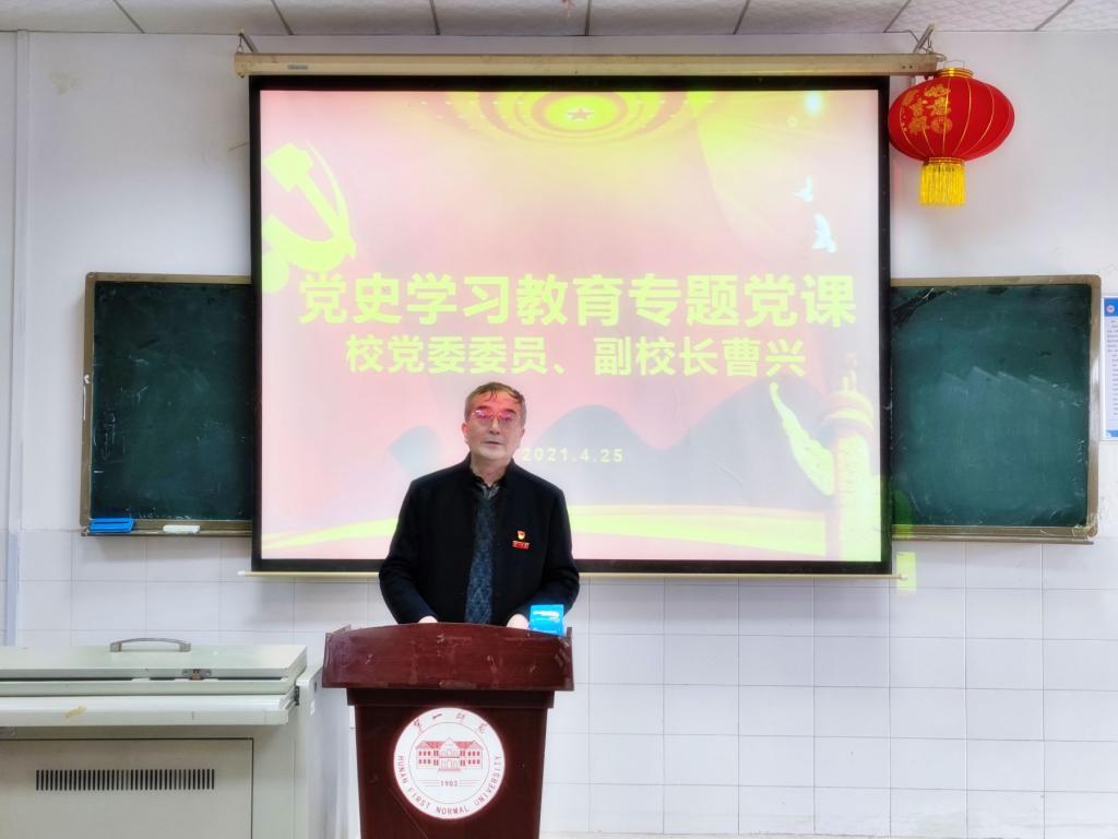 4月25日,校党委委员、副校长曹兴来我院讲党史教育专题党课。党课由党总支书记张福国主持,全体教师党员参加了学习。