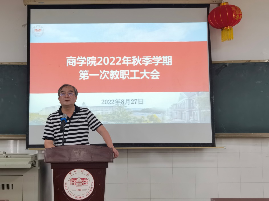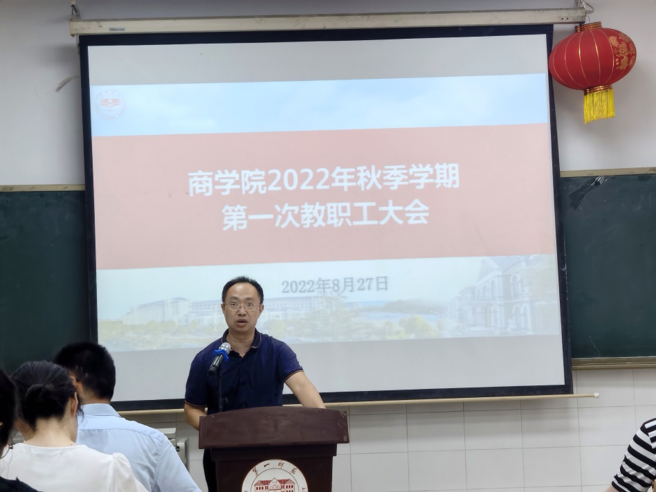 2022年8月27日,商学院组织召开秋季学期第一次教职工大会。校党委委员、副校长曹兴出席会议,商学院全体教职工参加了会议。会议由商学院院长肖攀主持。