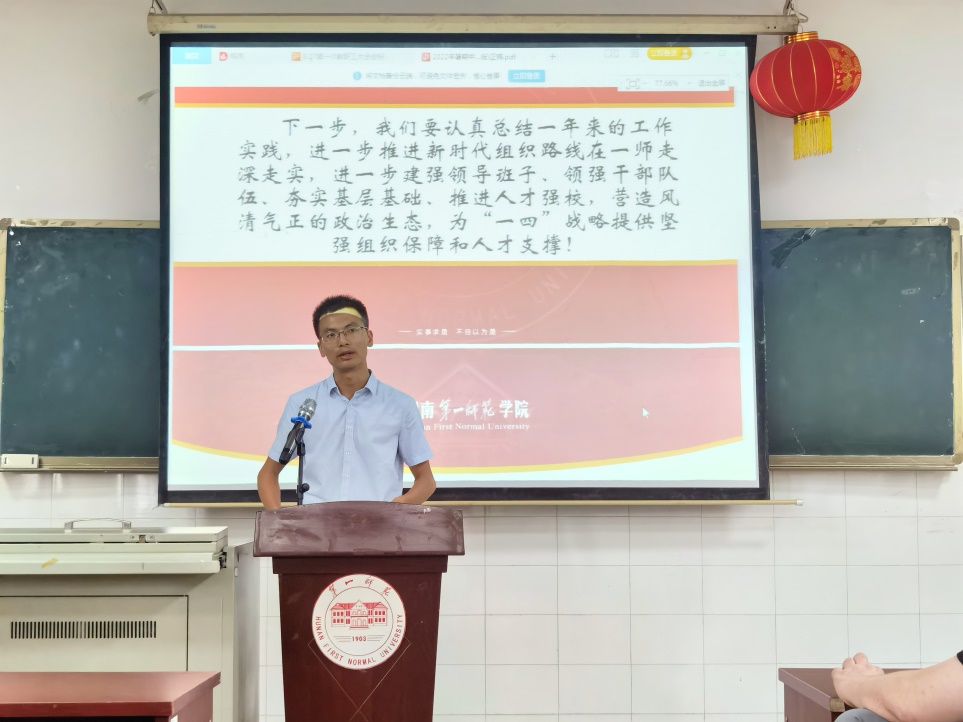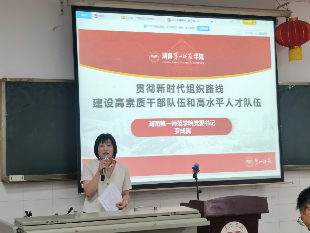 李辉华副书记在会上传达了学生相关工作要点,包括要注意舆情,多正面引导学生,确保校园的安全稳定,敦促学生遵守课堂文明公约,辅导员、班主任、班导师学期初要多下寝室、多关心学生等。他强调,当前重点工作是学生就业,老师们务必要督促学生积极就业。其次是考研,希望专任老师多指导帮助考研学生,可进行一对一帮扶指导。然后是四级通过率,目前成绩不错。专业教育方面,应多培养学生对专业的认同感,建议新生入学时各系开展一次专业认同教育。