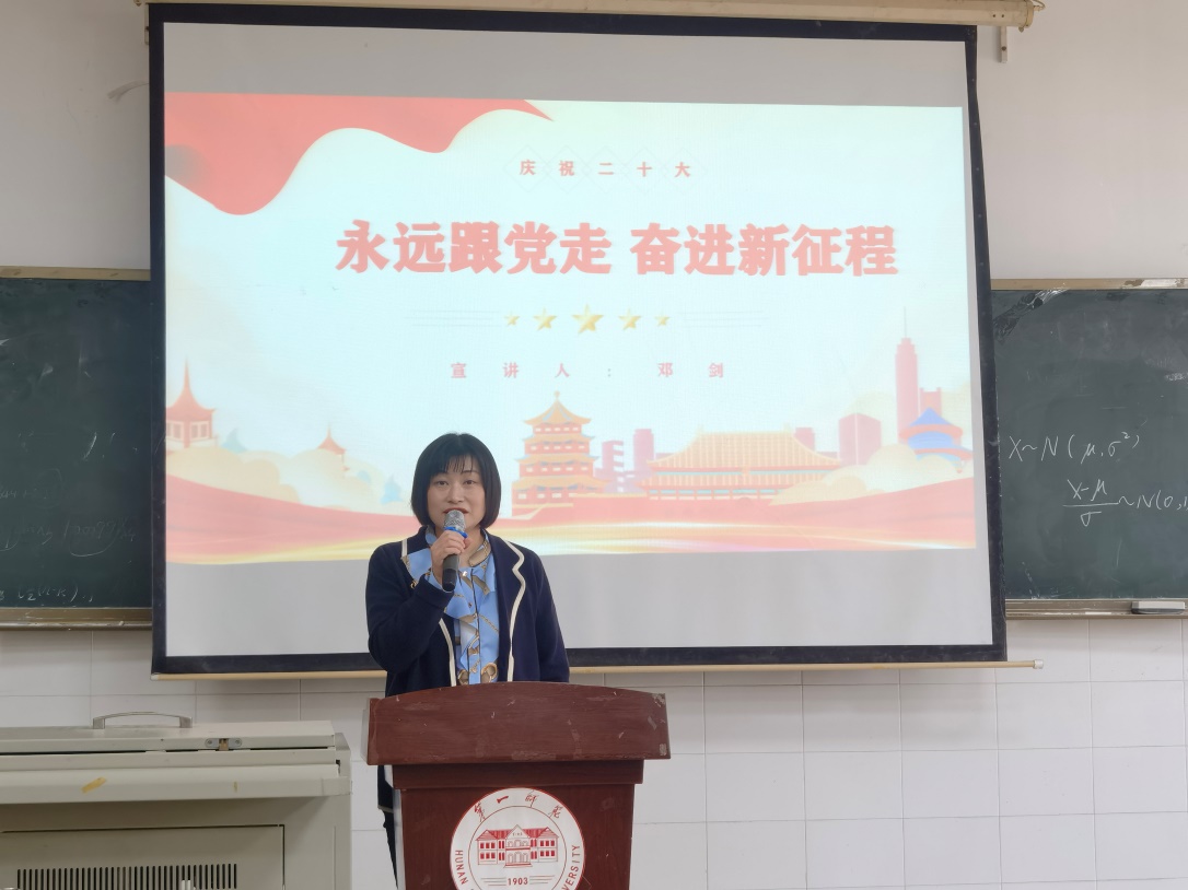 邓剑书记强调,“二十大”报告开幕式当天,学院已经组织全院教职工、学生党员全程观看了报告盛况。根据校党委要求,学院要认真组织学习“二十大”报告重要精神、将指示精神传达落实到位,并要在各支部活动中展开深入学习。