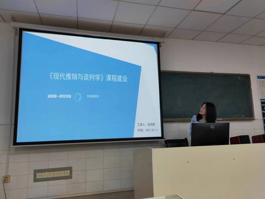 2023年4月11日下午两点半,市场营销系全体教师在玉衡南504开展“两性一度”金课建设教学研讨。本次研讨由系主任肖晨洁老师主持,由涂利娟老师、刘娅云老师和徐灿老师主讲,市场营销系全体教师共同参与。