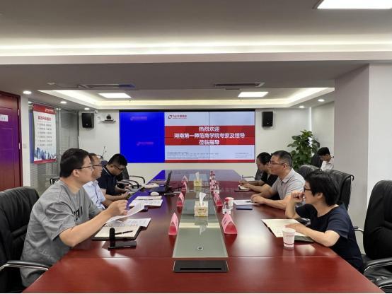 2023年7月17日上午,王朝晖副院长率队来到方正中期期货湖南第一分公司开展校企合作调研,我院国际经济与贸易系系主任孟娟博士、市场营销系系主任肖晨洁博士陪同调研,方正中期期货湖南分公司总经理赵国存、副总经理田伟正、合规专员兼人事专员邓莎、研究员刘宇星接待调研,正在方正中期实习的高校学生旁听调研。
