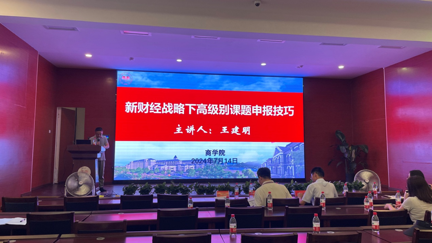 2024年7月14日下午,我院邀请浙江财经大学管理学院教授、科研处处长、绿色管理研究院院长王建明教授在城南书院校区报告厅为我院教师进行了主题为“新财经战略下高级别课题申报技巧”的指导讲座,王朝晖院长主持,科研处肖攀处长参会指导,学院科研骨干教师参与。