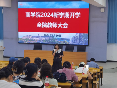 2024年8月30日,伟德国际1946商学院在玉衡南101会议室举行了秋季新学期开学全院教师大会。会议由王朝晖院长主持,全体教师齐聚一堂,共同探讨新学期的工作计划和目标。