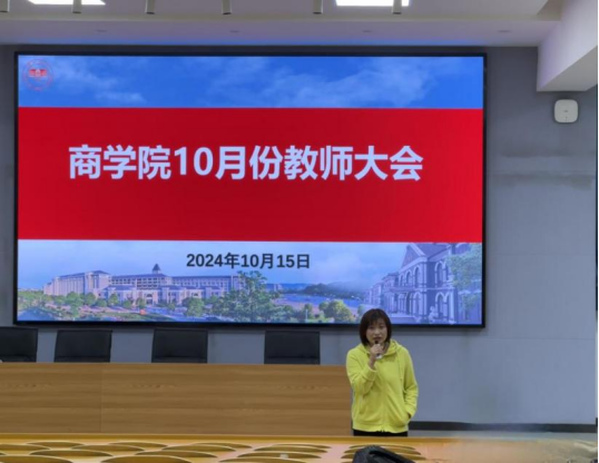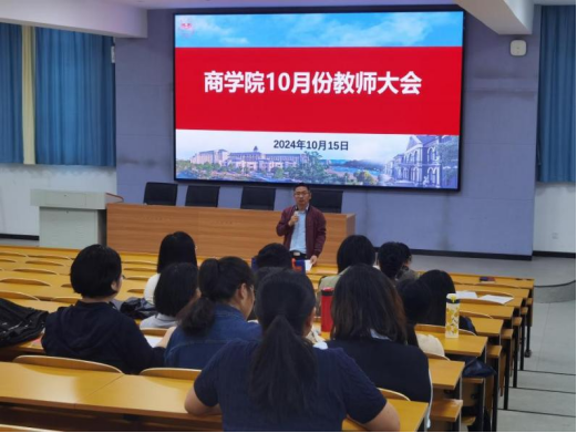 2024年10月15日下午,商学院在玉衡南101教室召开了2024年10月全院教师大会。会议由王朝晖院长主持,全体教师参加。