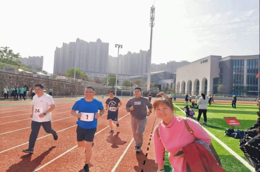在团体接力赛上,我院20位教职工运动员蓄势待发,奋勇向前,接力棒的交接传递着团结奋进的力量,也象征着老师们在教育工作中的接力与传承。接着,我院教职工运动员李慧和王朝晖分别参加了教职工女子中年组1500米和男子中年组5000米的长跑比赛,他们以稳健的步伐和坚韧不拔的精神,展现了一师红色精神与坚持不懈的毅力。
