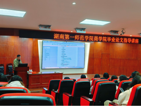 11月22日,商学院在特立南112模拟法庭举办"2025届毕业论文指导系列讲座"。讲座邀请郑准教授和郑效晨博士进行主题报告,商学院院长王朝晖、党委副书记王高见出席,21级全体毕业生参加。会计系学生党支部书记张青主持活动。
